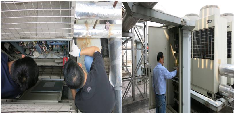 为确保大厦中央空调系统的正常运行,给客户提供健康、舒适的办公环境,川信物业公司配合维保单位—麦克维尔中央空调成都分公司于2018年4月11日至4月23日期间对大厦高中低区中央空调系统进行春季维修保养工作。本次保养含机组控制器、电气元件、保护装置、压缩机、膨胀阀、循环水管道的检查等共计16项工作。维保工作已顺利结束,大厦中央空调系统恢复正常运行并向大厦客户提供服务。